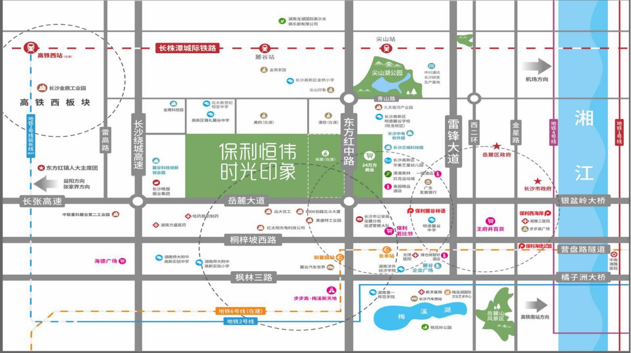 项目位于岳麓大道与东方红路交汇(尖山湖公园对面)项目有国企保利集团打造。